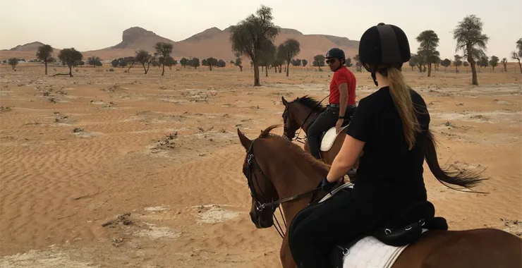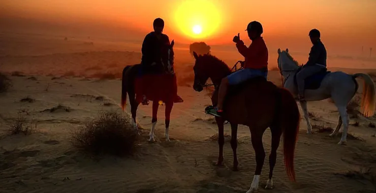 Опытный инструктор подберёт лошадь и темп под ваш уровень, будь вы новичком или уверенным наездником. Утренние и вечерние поездки особенно красивы: мягкий свет солнца, золотые пески и тишина пустыни создают ощущение абсолютного покоя.