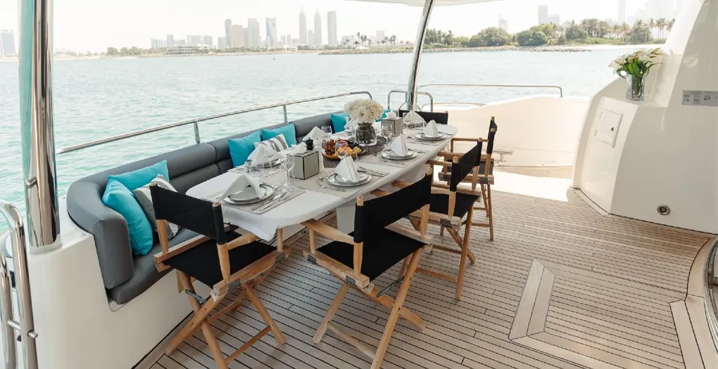 Современные развлекательные системы делают яхту отличной площадкой для DJ-сета, фуршета или ужина с шеф-поваром на борту.