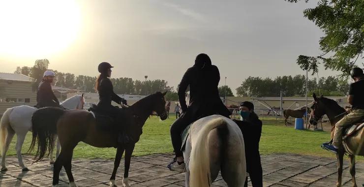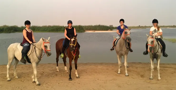 An experienced instructor will select the horse and pace to suit your level, whether you're a beginner or a confident rider. Morning and evening rides are especially beautiful: the soft sunlight, golden sands, and silence of the desert create a feeling of absolute tranquility.