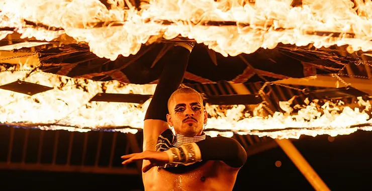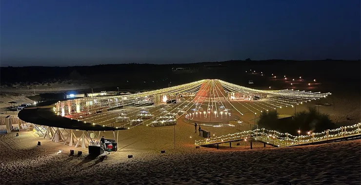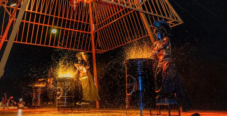 Next, transfer to Sonara Camp, where you'll be greeted by the cozy and luxurious atmosphere of an oriental camp. A buffet with a variety of dishes, soft pillows, and traditional carpets await you, while a live show with music and dance will immerse you in an oriental fairytale. Shisha and drinks are available for an additional fee.