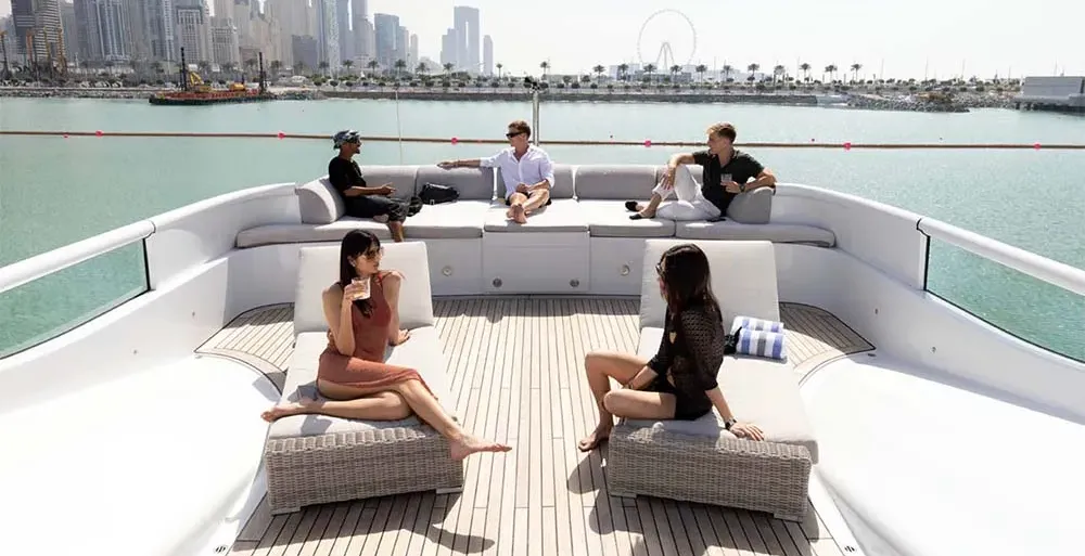 On board the 164 Oceanfast, you'll experience true maritime luxury. The yacht is ideal for weddings, corporate events, private parties, and cruises along the Dubai coast.