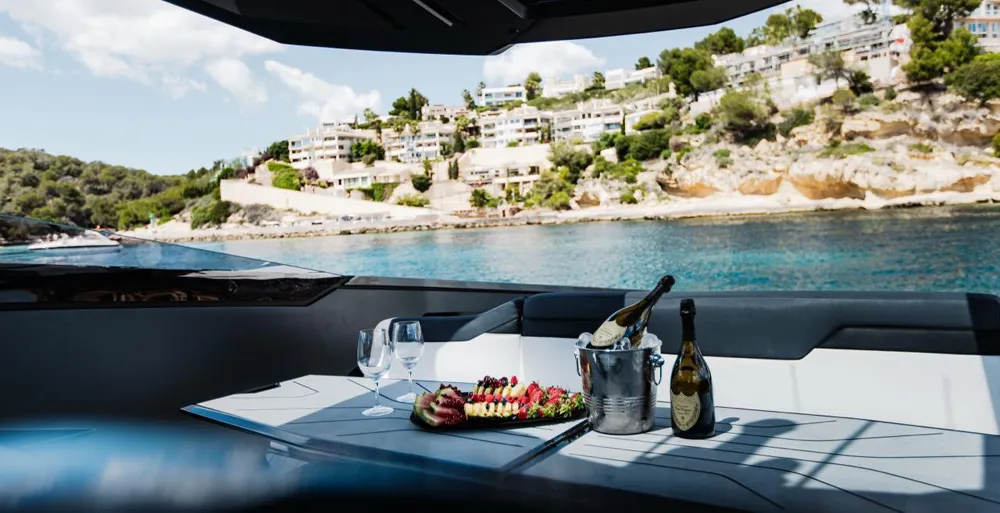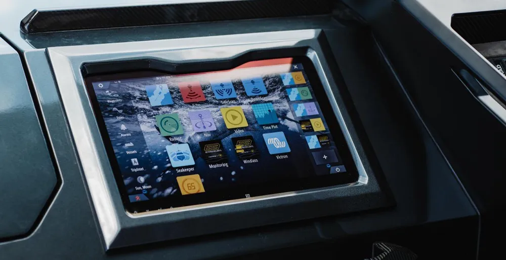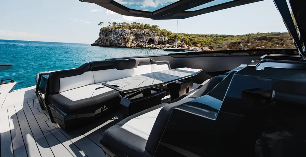 And for those who value comfort, there's a 43-inch retractable TV, electric tables in the cockpit, and premium navigation displays that combine speed, media, and one-touch control.