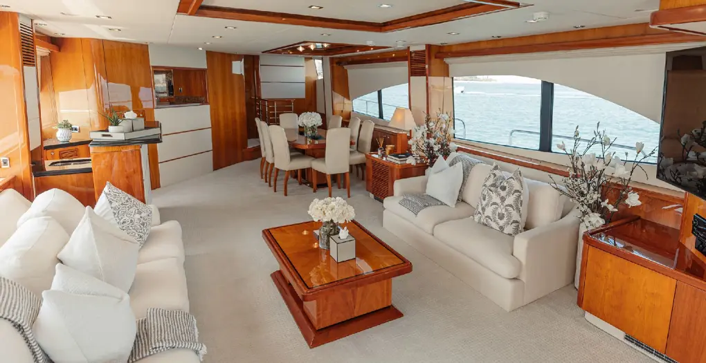 - A large saloon, spacious flybridge, and several relaxation areas allow guests to split into groups and ensure everyone is comfortable.