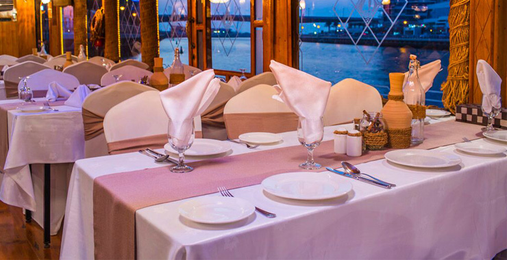 Очарование и романтику круизу придает морская прогулка не на современном корабле, а на традиционном деревянном судне арабов – лодке Dhow. Ужин на лодке Доу – редкая возможность прочувствовать настоящий колорит арабской культуры. Эти судна являются частью истории кораблестроения стран Ближнего Востока. Сидя на палубе лодки Доу и наслаждаясь ужином в свете ночных огней, вы ощутите связь между прошлым и будущим.